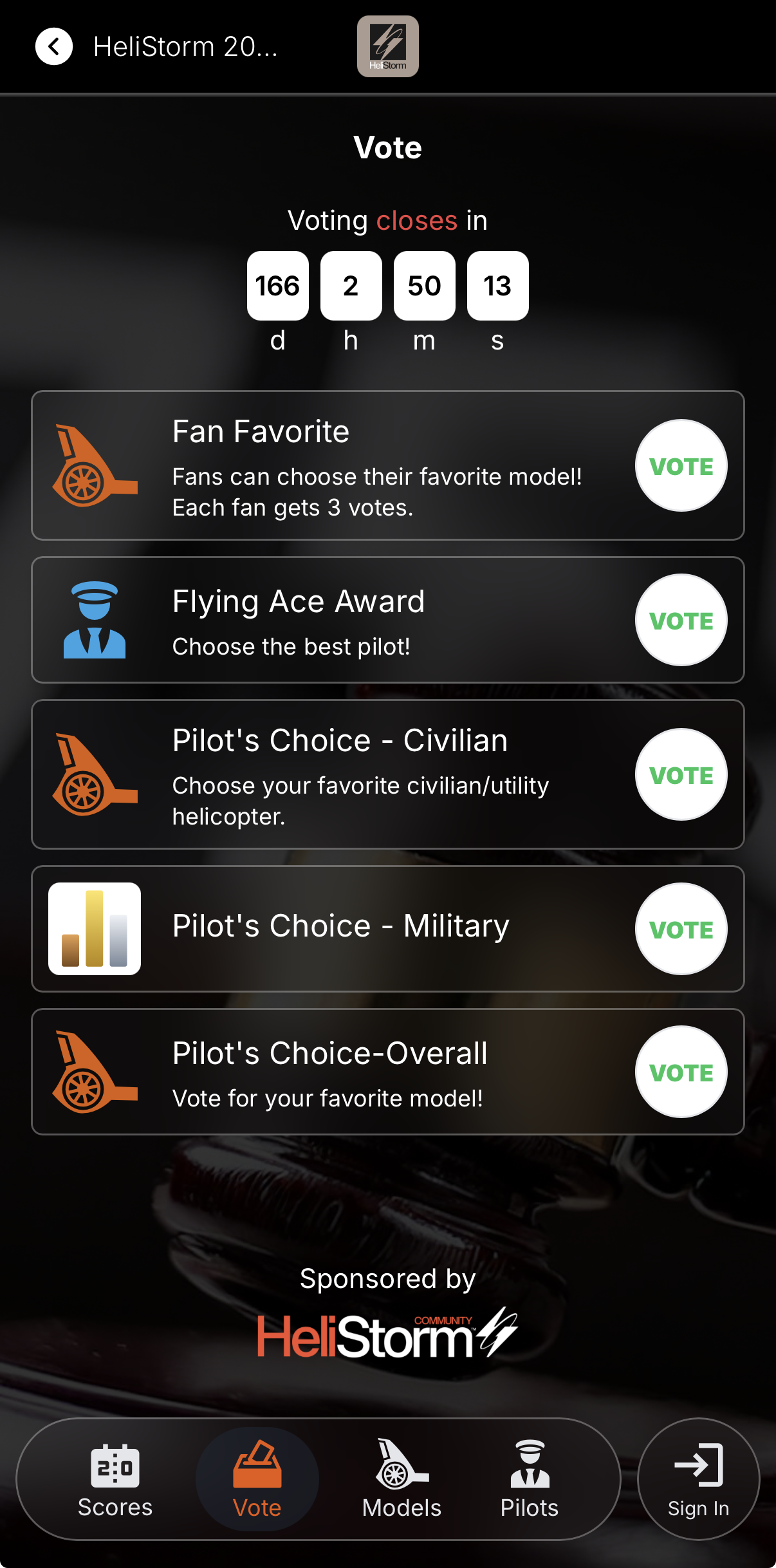Spectators: View live scores, vote on ballots, browse competitors & entries